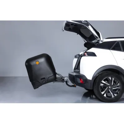 S’installe sur la boule d’attelage. Portes s’ouvrant latéralement pour un accès à la charge plus facile et plus commode des deux côtés. Séparateur central compris pour éviter des déplacements latéraux de la charge et sol démontable. Protégé du vent, il évite le bruit désagréable de l’aérodynamisme. Esthétique et fonctionnel Fabriqué en polyéthylène de densité moyenne assurant ainsi une haute résistance aux coups, torsions et à la corrosion. Ne limite pas la vitesse du véhicule. Une seule personne l’installe en quelques secondes. Système coulissant et rabattable qui permet un accès facile au coffre de la voiture. Serrure antivol intégrée Coffre équipé de 2 serrures avec clés et 2 orifices supplémentaires pour cadenas. Consulter la législation et les limites de charge maximum sur boule. Feux de marche arrière et antibrouillard Installation électrique incluse (13 pôles) (adaptateur 13/7 inclus). Homologué comme unité technique indépendante. Sans contrôle technique. Homologation CE. Volume 390 litres Charge utile 48Kg Poids à vide 25Kg Dimensions extérieures (LxPxH) 1180 x 640 x 755 mm Attention à la sortie du pot d'échappement contre la matière plastique du Towbox. Si la sortie est trop proche NE PAS MONTER !. Utiliser le kit élévateur ref.TBB0019.